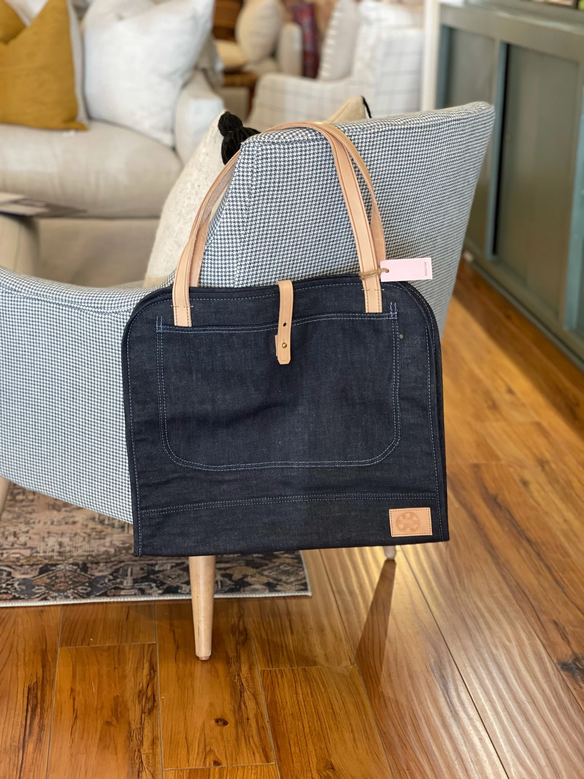 We just got in a large restock of denim aprons with some new styles available - nothing screams dad loves to bbq more than a dark denim apron with pockets for all his tools. But not only did we get three different styles of aprons (ladies do not miss out on the fantastic midi denim apron style,) but we also got the greatest little pot-holder ends perfect for cast iron camping or grill pans. Our denim placemats look amazing on both indoor and outdoor tables BUT our absolute favorite item that just arrived are our new denim log carrying bags! These will be fantastic later this year when the temps go back down but for now, these are amazing for campfires or fire-pits in the backyard . . . we can smell the s’mores already!