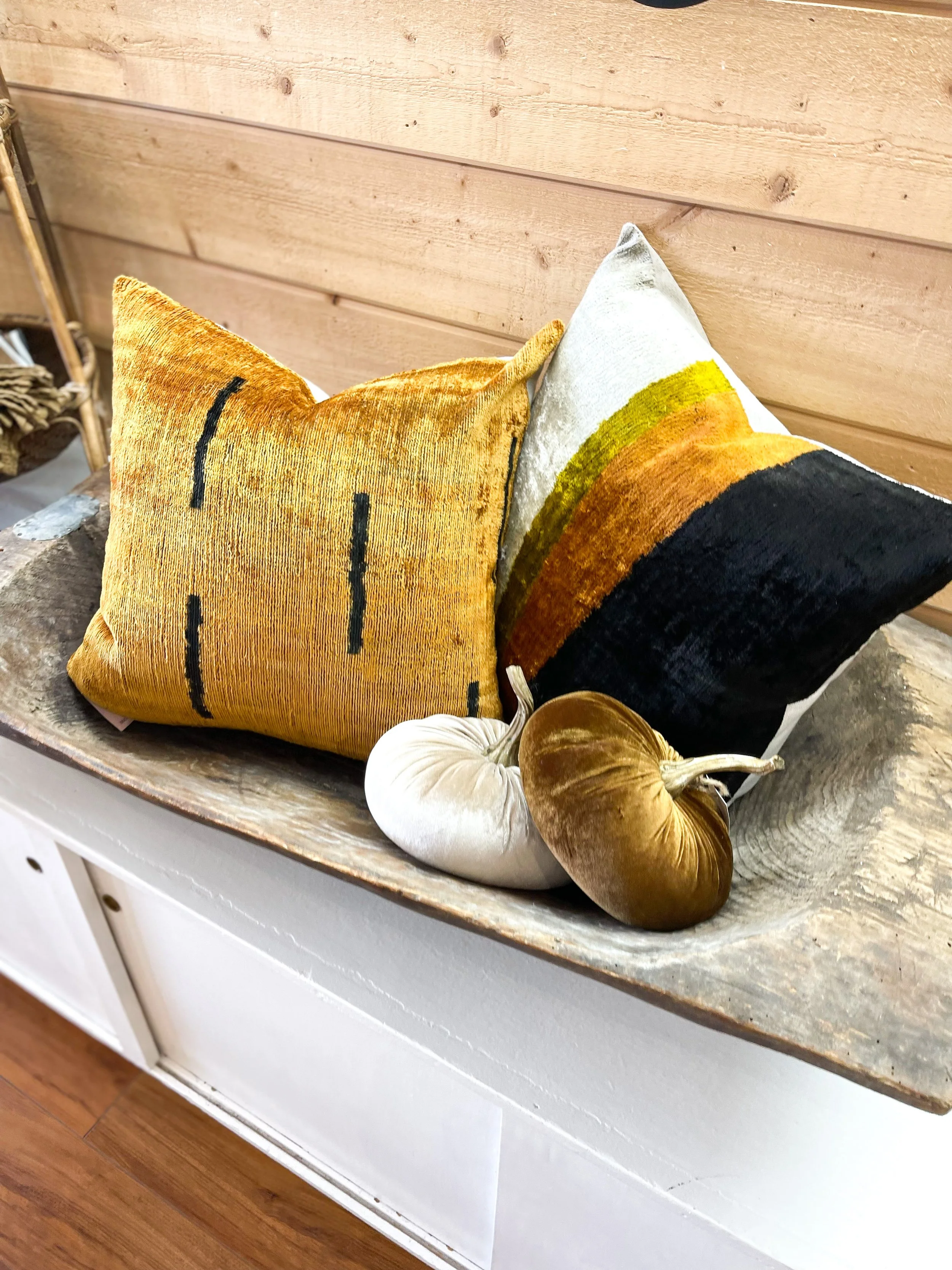 Speaking of velvet… These dreamy silk/velvet pillows are such a fun way to bring some fall tones to your sofa or favorite reading chair! They have such great textures and really add to that autumn atmosphere that we’re all trying to emulate this time of year! We also think this stunning wooden dough bowl adds so much to a space!